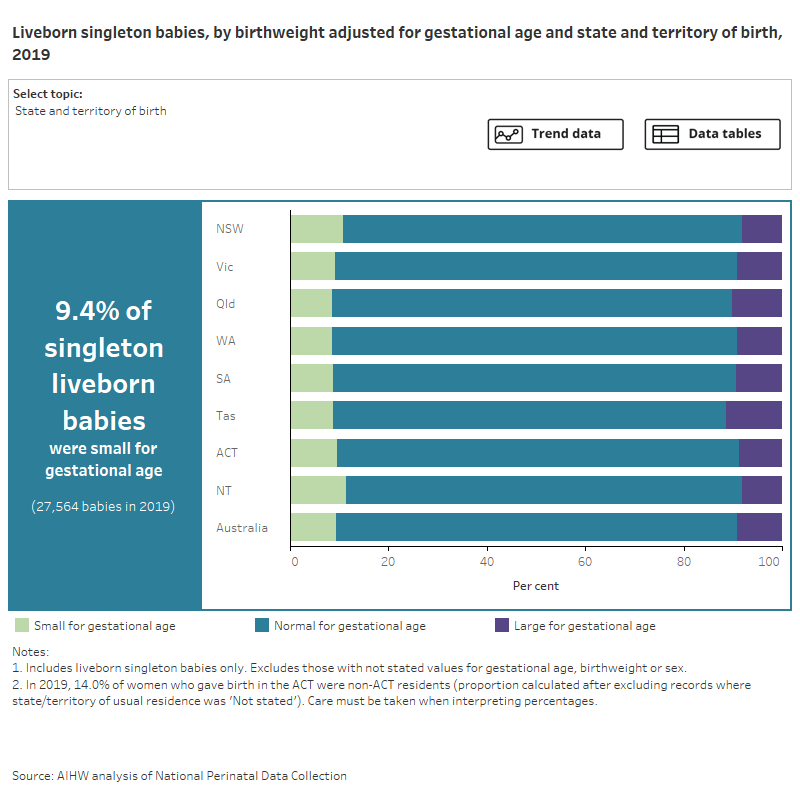 Australia S Mothers And Babies Birthweight Adjusted For Gestational Age Australian Institute Of Health And Welfare